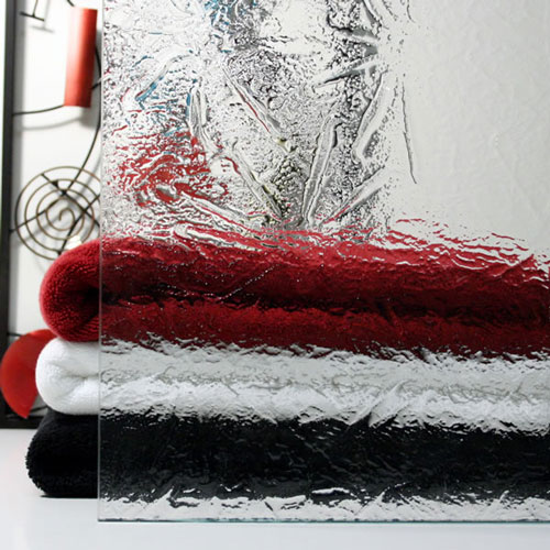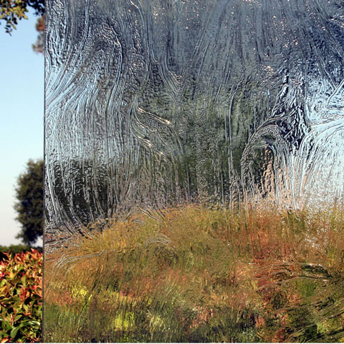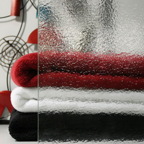 Obscure glass comes only in 3/8" thickness and is more expensive than clear glass (please call for pricing). Below are pictures that show the different patterns available in obscure glass (only the outside is patterned, the inside is smooth).