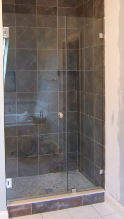 This is a 3/8" frameless enclosure on a fiberglass shower. Camden