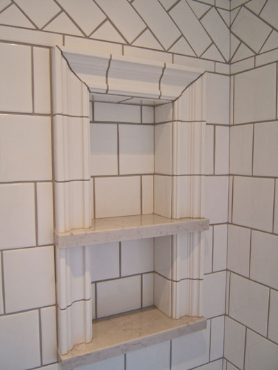 It is unusual to see the care with which Kenistons Tile put into making this cubby absolutely perfect. (see shower at left)